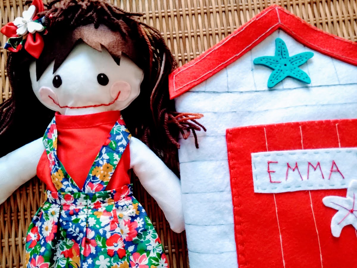Oggi vi porto al mare, con l’ultimo dei miei coloratissimi libri sensoriali a tema mare, appunto, e la piccola Emma e la sua buffambola personalizzata, con ben tre cambi di abitini estivi e invernali, tutti rigorosamente fatti a mano! Questo libro sensoriale a tema mare ha una forma diversa dal solito libro, perchè in realtà è un tappetino gioco, dove le sei facciate standard si uniscono a formare due scenari pieni di colore e allegria: la cabina del mare, con l’asciugamano, il costume, i vestiti per uscire e andare a prendere un buon gelato dal carretto dei gelati! Eppoi la spiaggia, l’ombrellone, le conchiglie e le stelle marine.. un fondale marino con tanti morbidi elementi da staccare e attaccare, colori e forme da riconoscere. Emma è ancora piccolina e sono certa amerà giocare coi morbidissimi pescioini colorati e le stelle marine, e in questo libro sensoriale a tema mare ci sono tanti elementi e materiali diversi, proprio per stimolare la sensibilità tattile e, ovviamente, la fantasia!