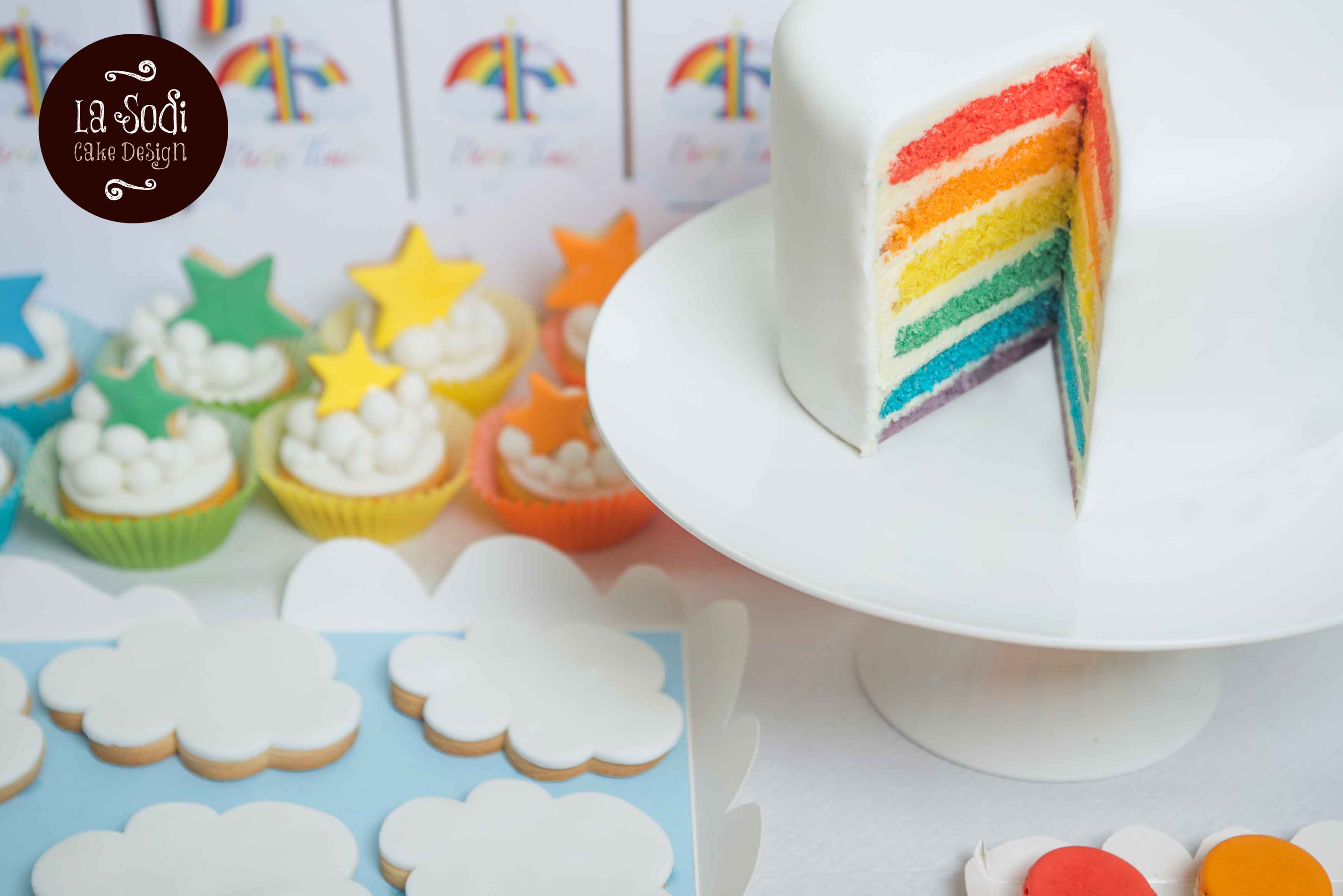 Non potevo non rivolgermi a lei per il bellissimo sweet table del primo compleanno di mio figlio! Sia perché, come vi ho già raccontato, sono da mesi alle prese con una brutta doppia tendinite che mi impedisce di impastare, sia perché io non ho proprio la pazienza di fare una torta un tantino elaborata come la Rainbow Cake! Non è una ricetta complicata ma ci vuole mano ferma e precisione, e si sa che io amo le cose più sbrigative e le decorazioni direi quasi caotiche! Mi sono però innamorata di questa torta appena l’ho vista, girovagando nel web alla ricerca di idee per la festa di compleanno: l’originale è di Sandy’s Cake e potete vederla qui. Ho chiesto a Natascia di ricrearla praticamente uguale, il risultato è stato spettacolare, un lavoro preciso, pulito e colorato come solo lei sa fare! Volete provare anche voi a stupire i vostri invitati con una super colorata Rainbow Cake?! Ecco la ricetta!