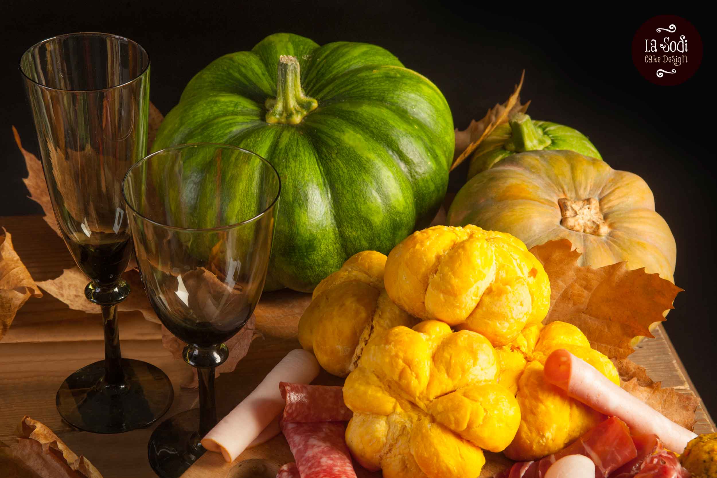 Per tutto l’Autunno mi sentirete dire amo l’Autunno! E amo l’Inverno, l’aria grigia e la pioggia rumorosa, le serate da passare in casa, in compagnia di un vecchio film, un buon bicchiere di vino rosso e un tagliere ricco di salumi e formaggi, da gustare con del buon pane fatto in casa, di quelli che riempiono ogni stanza di quell’intenso odore di buono, una coccola quasi, un abbraccio profumato come questo che ci regala oggi Donatella Pirri de La Saracena, fatto di buffe pagnottelle di zucca.. a forma di zucca!
