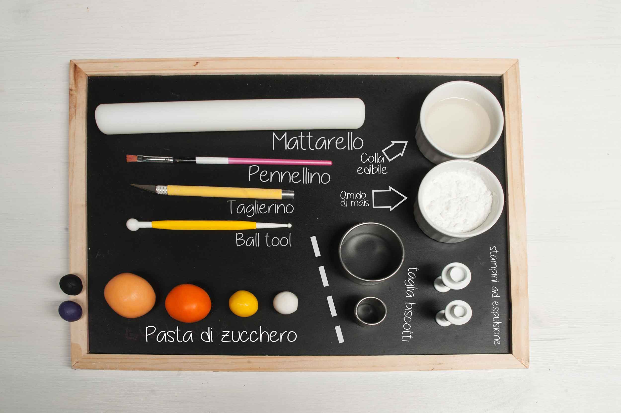 - Amido di mais (per tamponare il piano da lavoro e non far aderire la pasta di zucchero)